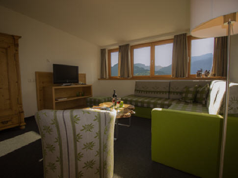 Wohnung für 2 - 6 Personen (max. 4 Erwachsene und 2 Kinder), ca. 75 qm, Wohnraum mit Küchenzeile inkl. Mikrowelle und Spülmaschine, Essecke, ausziehbare Komfort-Schlafcouch, zwei separate Schlafzimmer, Badezimmer mit Du / WC, zusäzliches separates WC, Sat-TV, Durchwahltelefon, ca. 12 qm Süd-Balkon bzw. Terrasse mit Panoramablick.